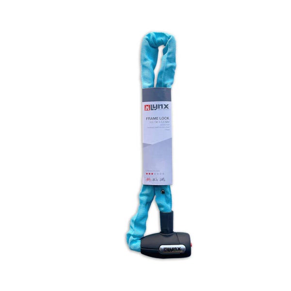 The Lynx cityline M chain lock has a 85 cm long hardened steel chain with 5.5 mm thick square links.